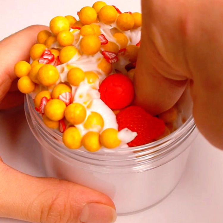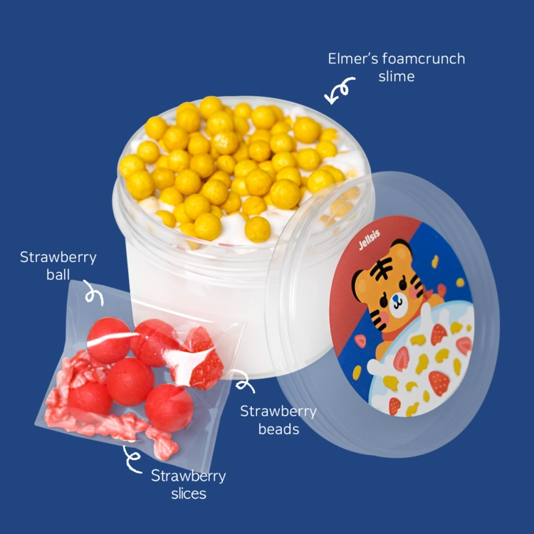비스켓향, 우유베이스에 시리얼 폼볼과 딸기 파츠를 얹어 진짜 시리얼 같은 비주얼의 슬라임