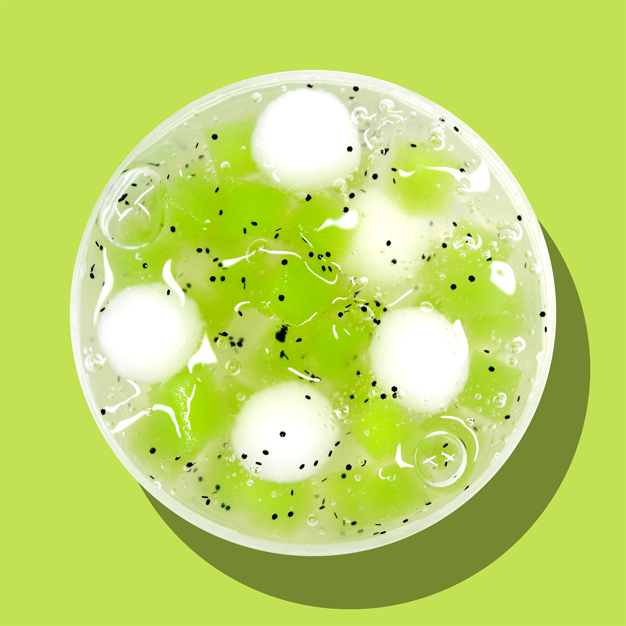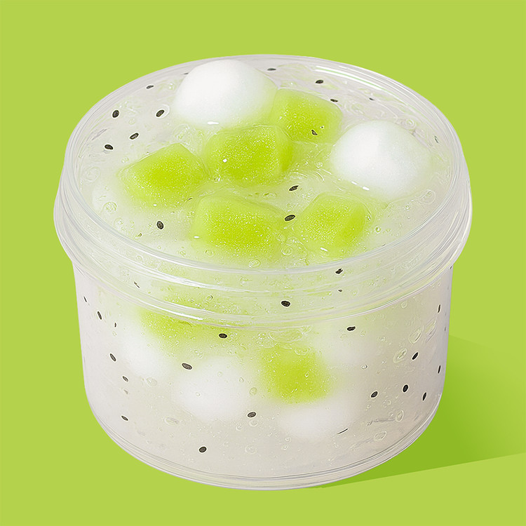 키위향, 클리어베이스에 키위젤리와 폼폼이 들어 몽글 말랑 통통한 촉감의 슬라임