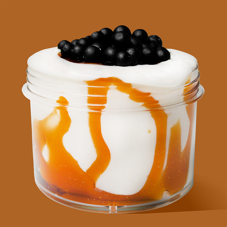 비스켓향, 푸딩지글리에 캐러멜잼과 검정폼볼을 더해 타피오카 밀크티 같은 슬라임