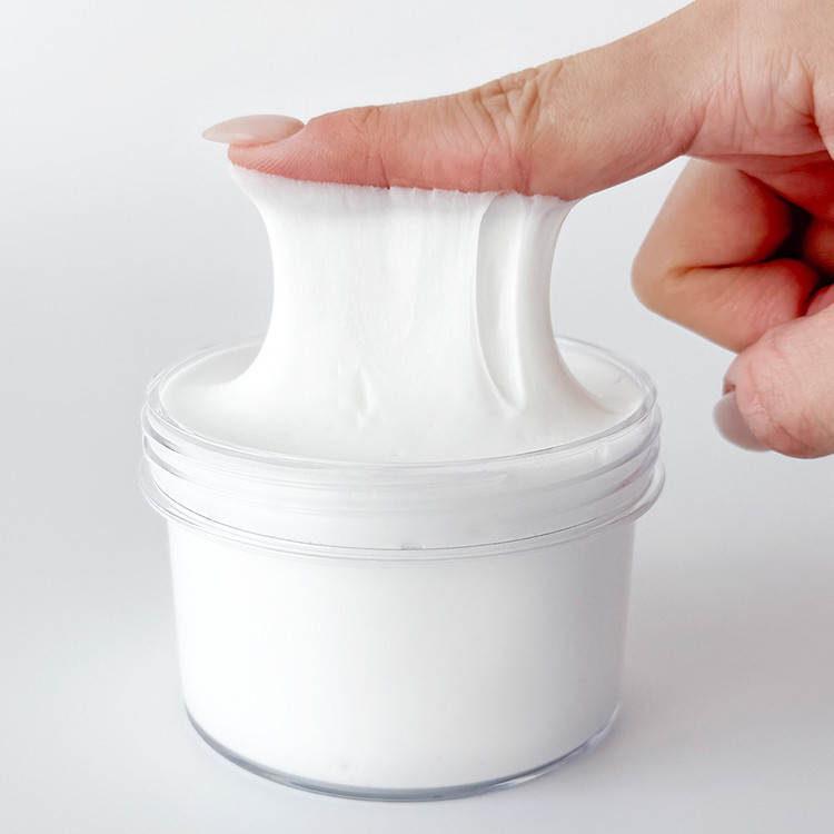 슬라임을 단단하게 하고 싶을 때, 빈 용기에 슬라임을 넣고 1회당 약 5ml (3~5방울)씩 응고제를 첨가하여 용기에서 섞어주세요. 자신의 손에 알맞은 농도까지 2~4회 정도 반복 해주세요.
