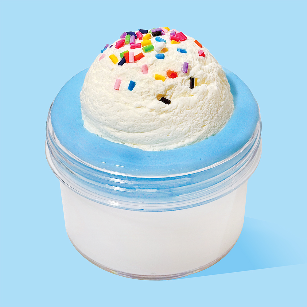 밀크향, 우유지글리 베이스 위에 아이스크림 점토와 무지개 스프링클을 얹어주면 달콤한 밀키 디저트 같은 슬라임