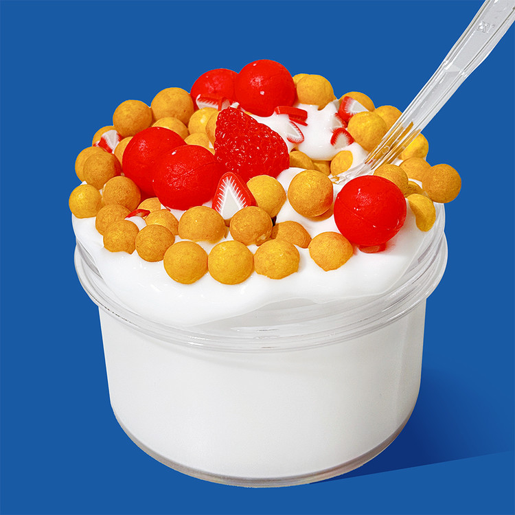 비스켓향, 우유베이스에 시리얼 폼볼과 딸기 파츠를 얹어 진짜 시리얼 같은 비주얼의 슬라임