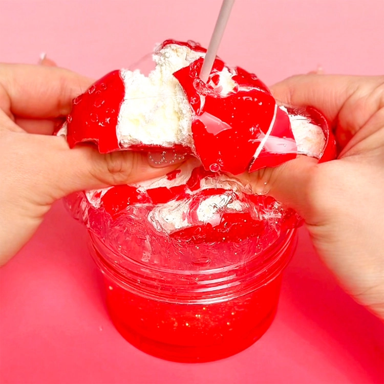사과주스 향, 왁뿌 점토를 부순 후 슬라임과 섞어주면 촉촉~ 폭닥한 슬라임으로 변신!